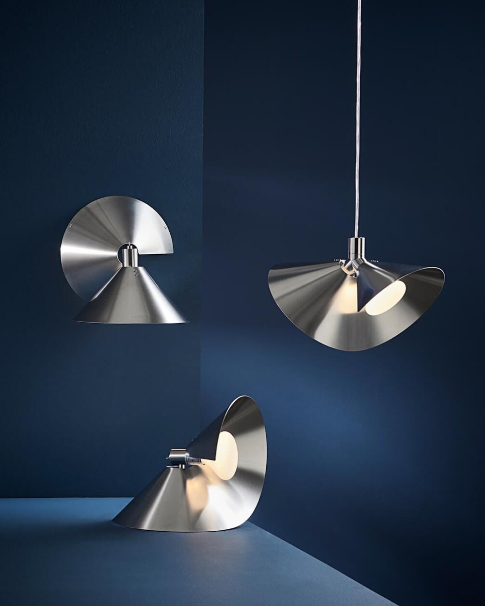 Peel findes som pendel, bordlampe og væglampe, som med fordel kan kombineres for at skabe en helhed i indretningen.