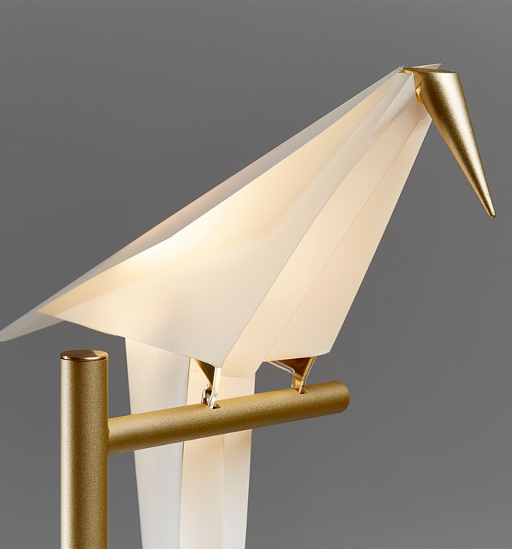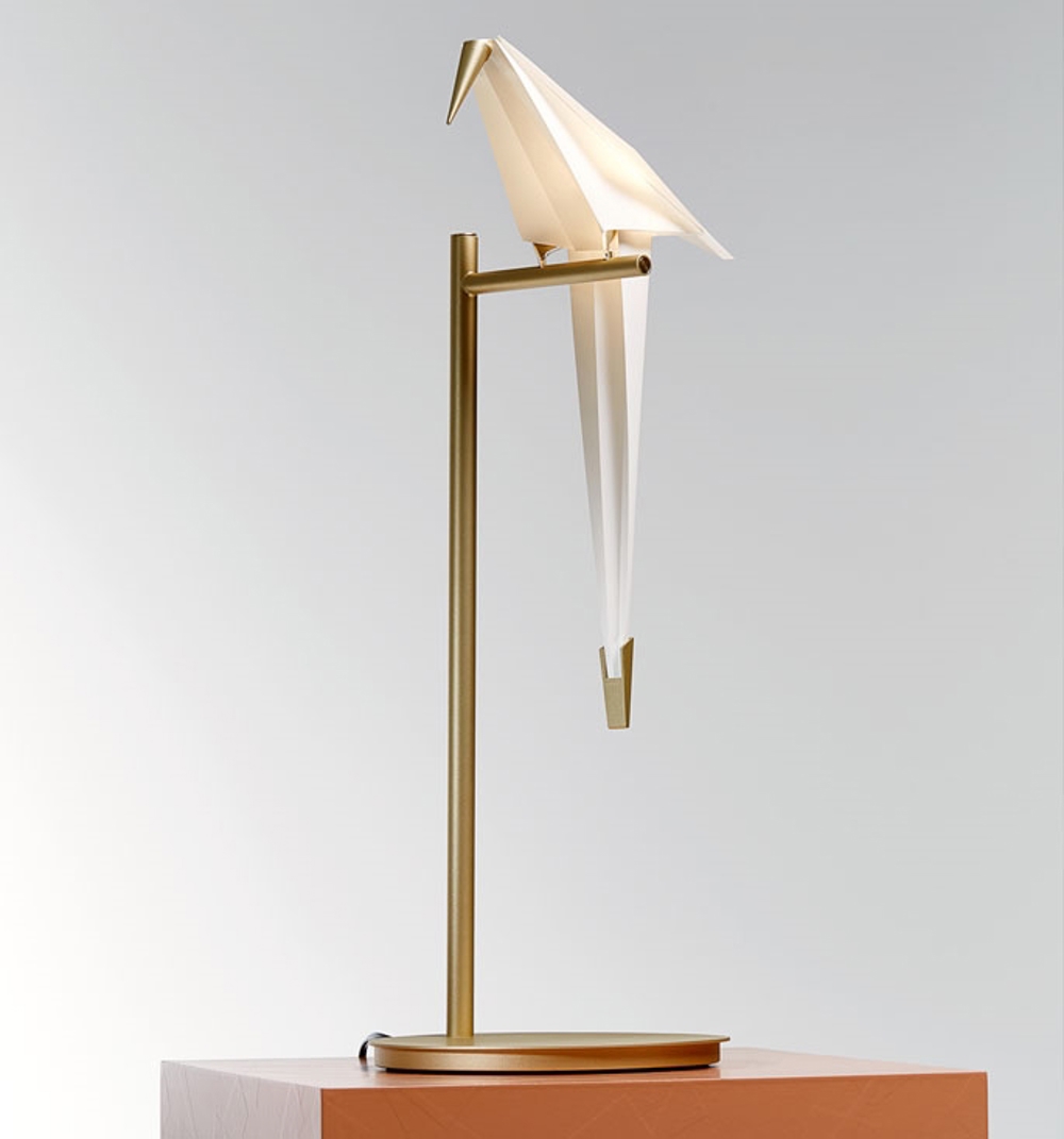 Perch Light bordlampen består af 1 abstrakt fugl på en gren, som giver en smuk glød til rummet. Hvis man rører fuglen let, kan den svinge, hvilket giver den endnu mere liv.