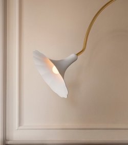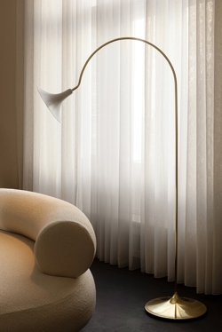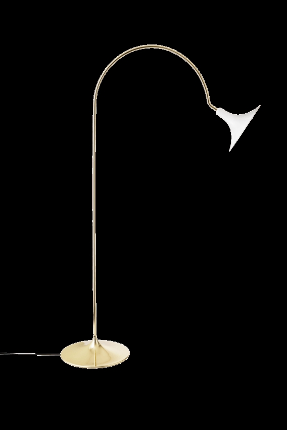 Nuura Petalii gulvlampe, poleret messing/hvid – Designet af Nika Zupanc.