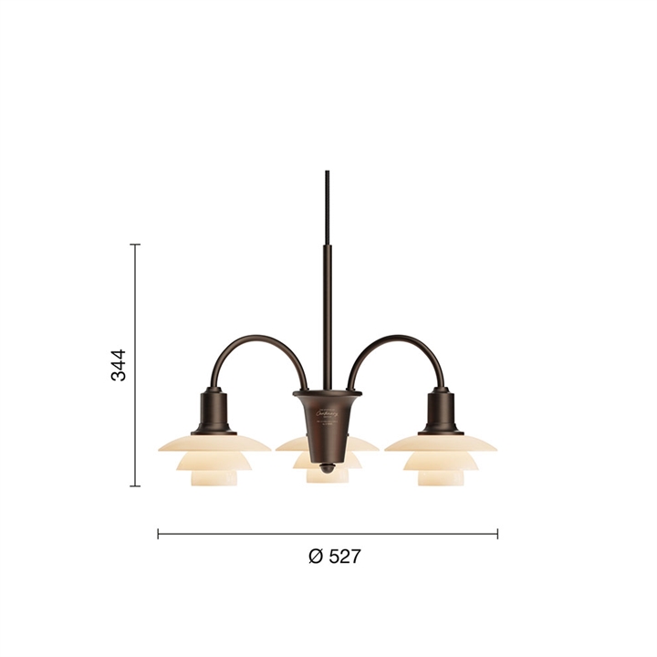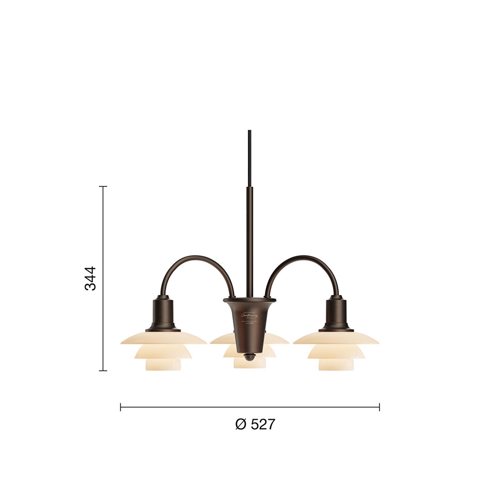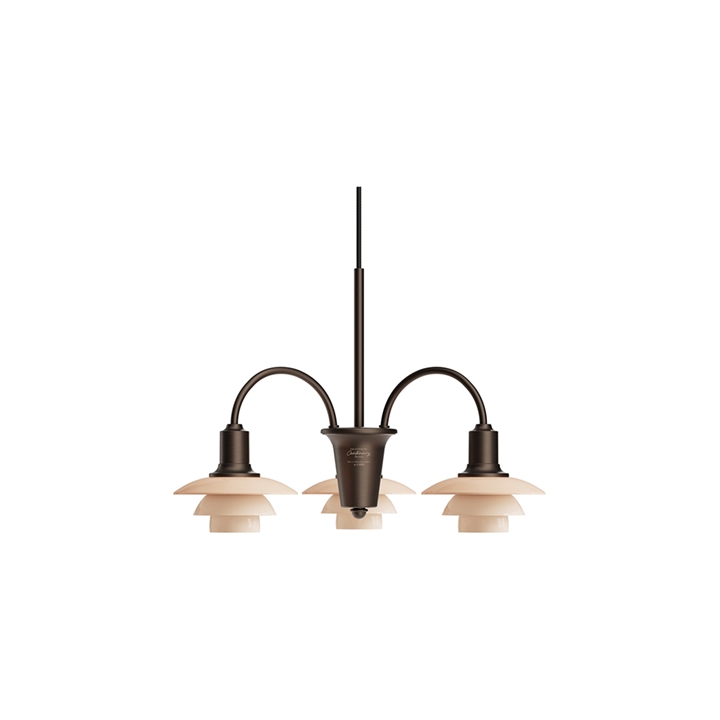 Louis Poulsen PH 1/1 Centenary Edition lysekrone med 3 arme, aged brass/dusty terracotta - designet af Poul Henningsen