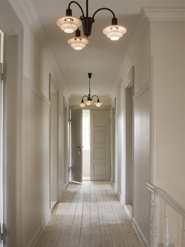 PH 1/1 Centenary Edition lysekronen udsender et varmt og roligt blødt lys til rummet og vil med sit retroudtryk passe godt ind i både klassiske og moderne indretninger. Skærmene i den støvede orangebrune dustry terracotta er af mundblæst firelagsglas og har blanke oversider og sandblæste hvide undersider. Ophænget med finish i bruneret messing er delvist støbt, ekstruderet og presset. Hver komponent er børstet forsigtigt for at give en struktur med hårfine linjer. Den rå messing er patineret omhyggeligt for at mørkne overfladen og derefter lakeret for at bevare udseendet.