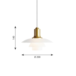 PH-lampenummeret refererer til lampeskærmenes størrelse. Derfor består PH 2/1 pendlen af en overskærm på ca. 20 cm og underskærme som er fra 1/1 versionen.