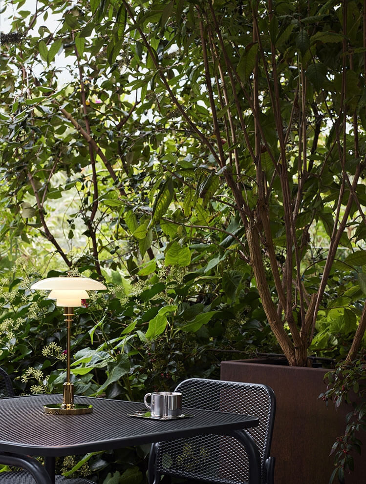 Den bærbare PH 2/1 bordlampe kan både bruges indendørs og udendørs. Batteriet kan oplades med USB-ledning eller trådløst og giver 5,5 timers lys ved fuld styrke, 13 timer ved 45 procent, 45 timer ved 20 procent og 120 timer ved fem procent. Både batteriet og LED-lyskilden er integreret i lampen og kan udskiftes.