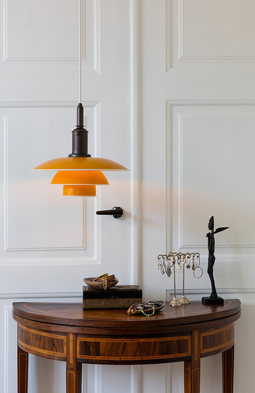 Den enestående PH 3½-3 pendel giver et godt og dekorativt lys fra de farvede metalskærme i tre lag, som primært leder lyset nedad. PH 3½-3 pendlen er designet ud fra Poul Henningsens ikoniske treskærmssystem fra 1926, som sørger for en fantastisk blændfri lysfordeling. Den unikke pendel er utrolig alsidig og vil passe ind i både klassiske og moderne indretninger.