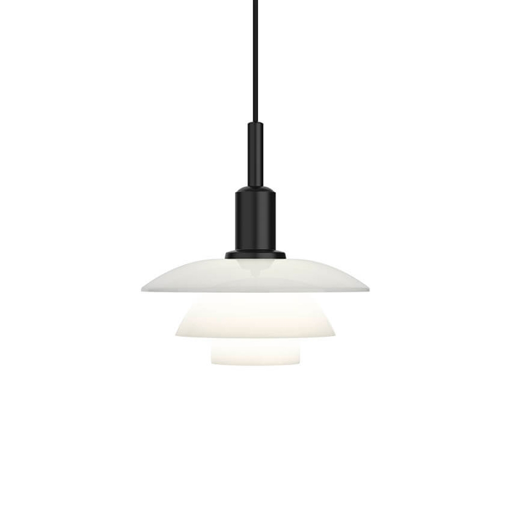 Den enestående PH 3/3 pendel giver et blødt og harmonisk lys fra det mundblæste hvide opalglas i tre lag, som primært leder lyset nedad.