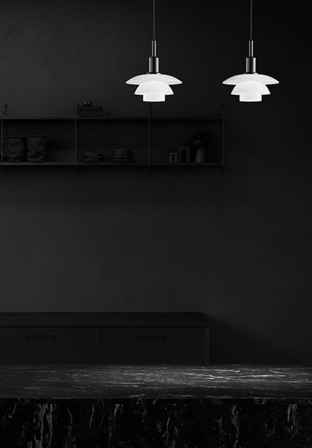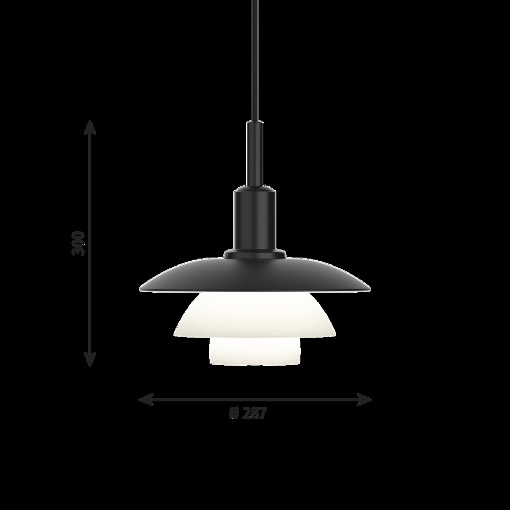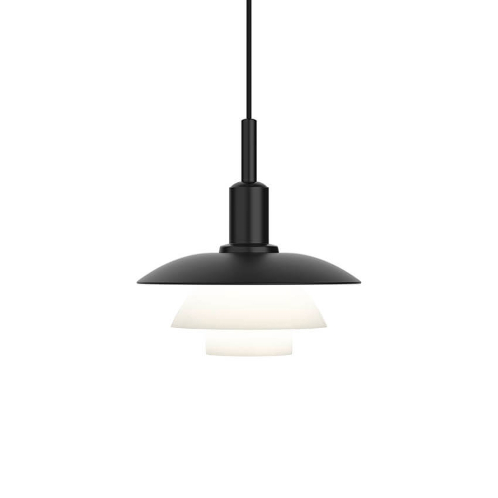 Den enestående PH 3/3 pendel giver et blødt og harmonisk lys fra den ene mat sorte lakeret og de to opale glasskærme, der danner tre lag, som primært leder lyset nedad. PH 3/3 pendlen er designet ud fra Poul Henningsens ikoniske treskærmssystem fra 1926, som sørger for en fantastisk blændfri lysfordeling.
