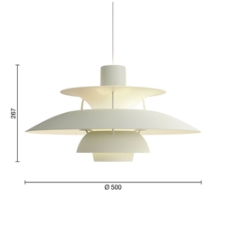 PH-lampenummeret refererer til lampeskærmenes størrelse. Derfor består PH 5 pendlen af en overskærm på ca. Ø50 cm.