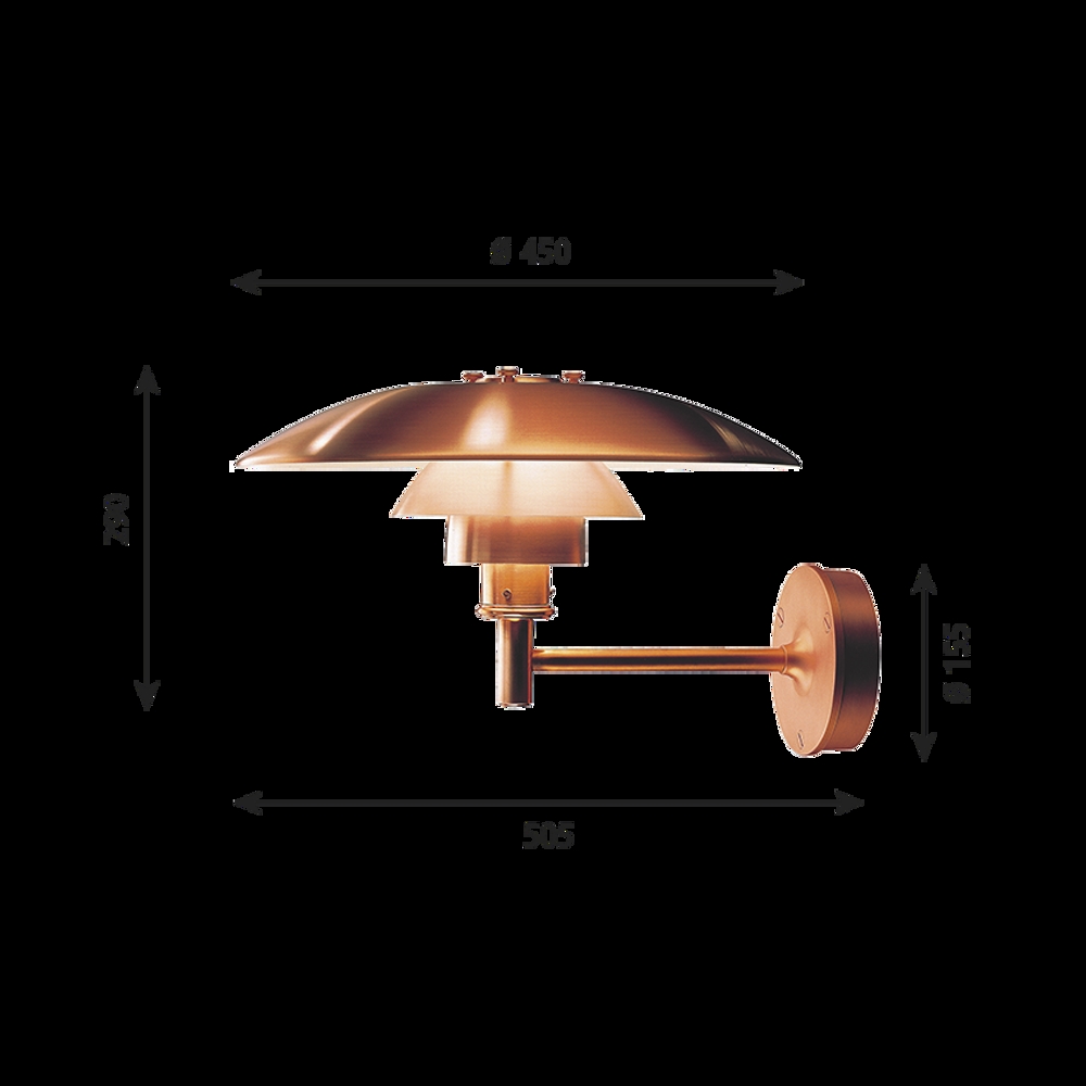 Den enestående PH væglampe giver et blødt og harmonisk lys fra skærmene i tre lag, som primært leder lyset nedad. Denne PH udendørslampe er designet ud fra Poul Henningsens ikoniske treskærmssystem fra 1926, der sørger for en fantastisk blændfri lysfordeling.