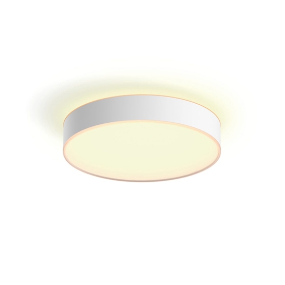 White Ambiance gør det muligt at dæmpe fra blødt, varmt lys til koldt, køligt lys. Loftlampen kan dæmpes via Hue appen eller via Hue Switch, som kan tilkøbes.