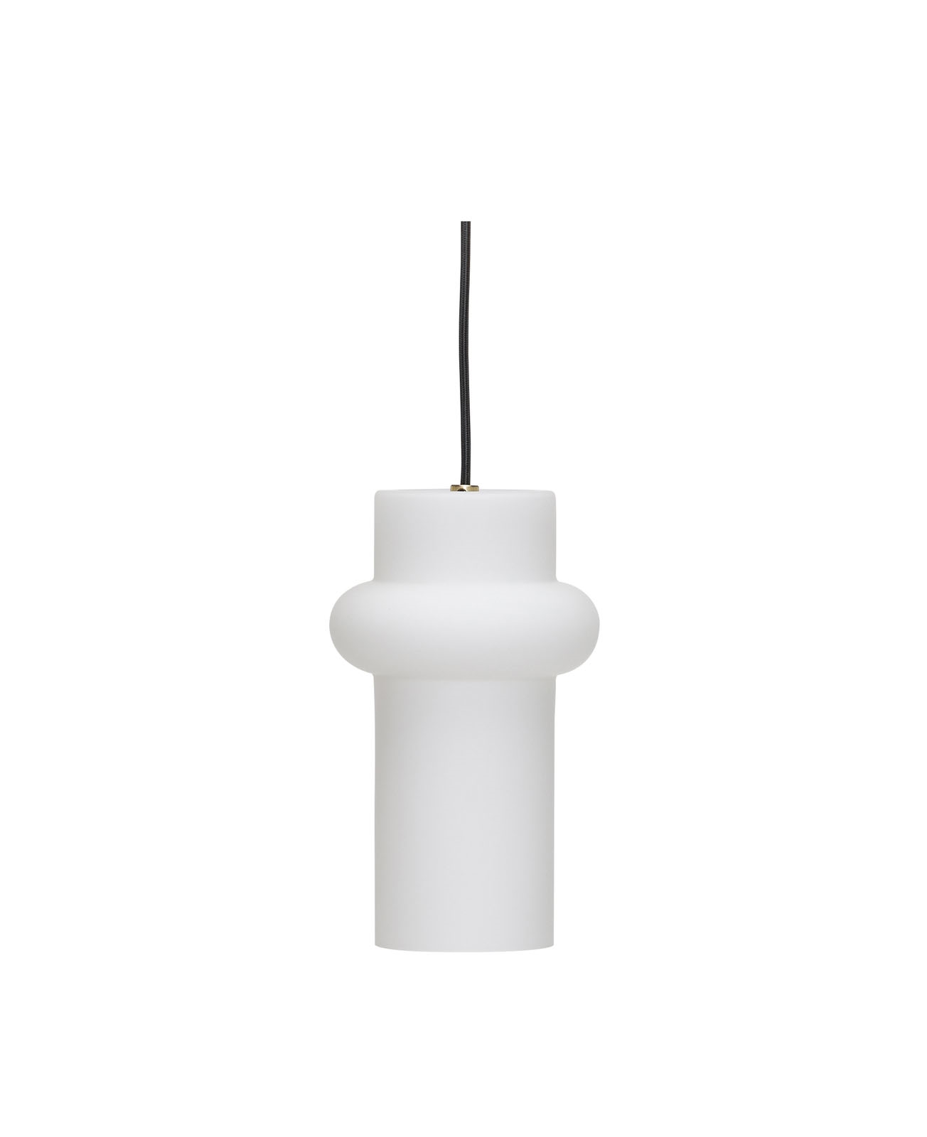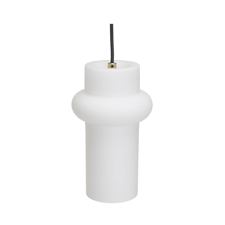 Pilule i denne variant med mat hvid skærm er en afdæmpet og elegant pendlen velegnet til mange indretninger. Den afrundede form og det bløde mundblæst opalglas skaber en behagelig atmosfære, mens detaljer i messing og den sorte stofledning tilfører diskrete kontraster til designet.