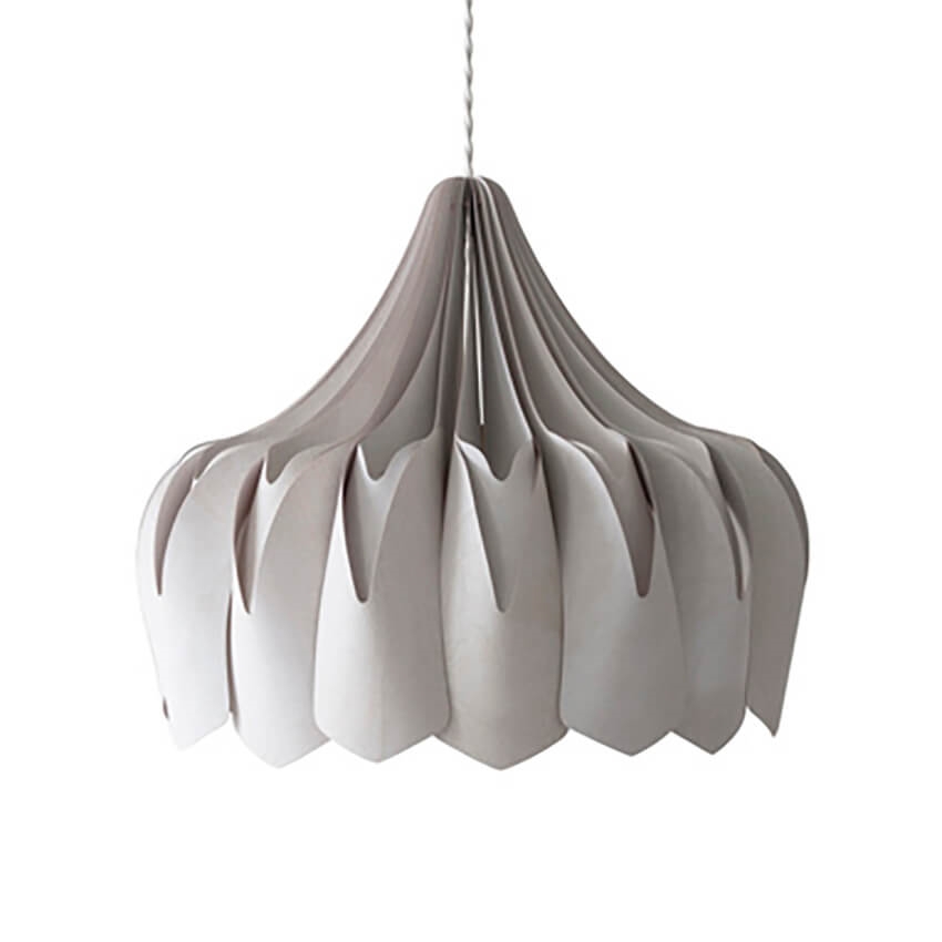 Lampen består af bæredygtig certificerede birkekrydsfiner, der er håndlavede i Finland og samlet uden skruer eller lim. Pioni vil pynte meget til din stue eller over dit køkkenbord.