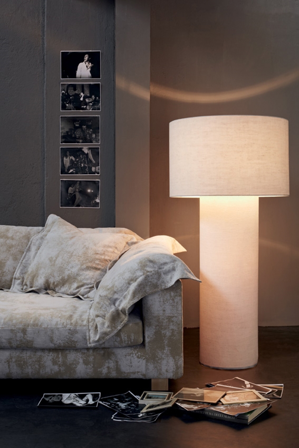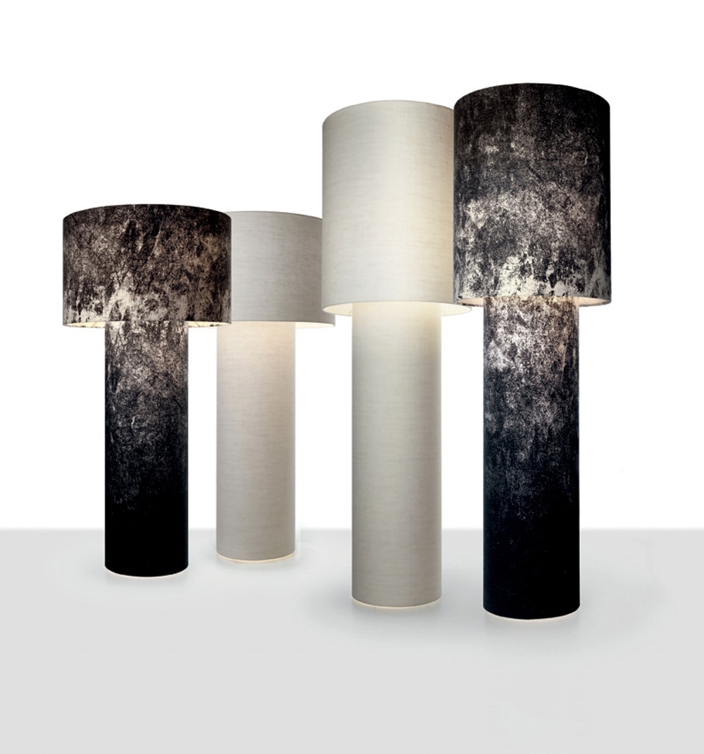 Pipe gulvlampens form er inspireret af rør fra fabrikker, men for at give et rå og samtidig elegant touch er lampen dækket med flot stof i flere farver.