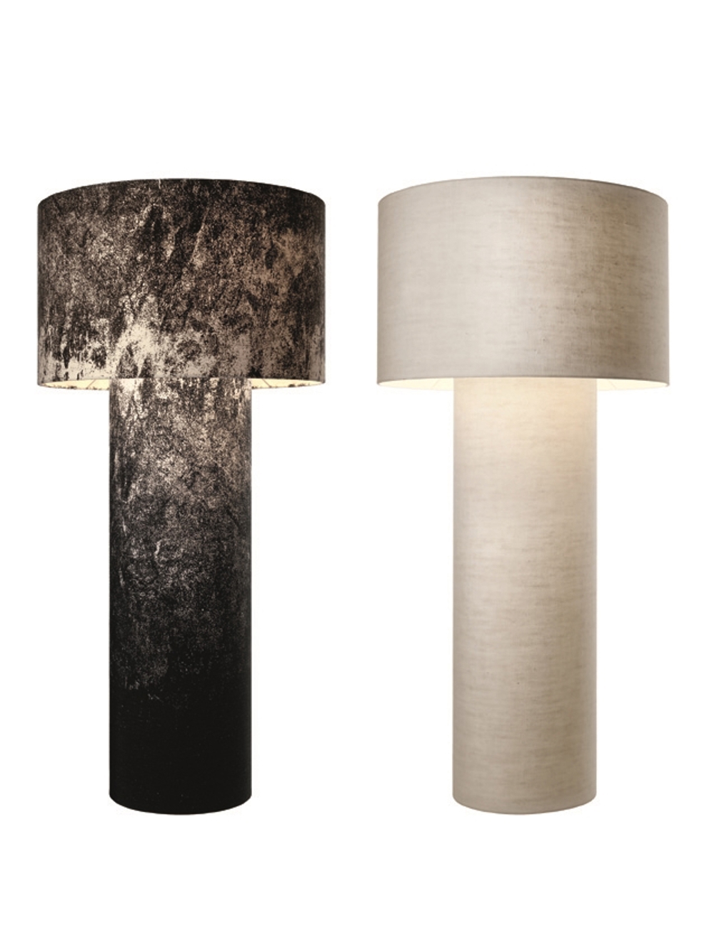 Pipe gulvlampens form er inspireret af rør fra fabrikker, men for at give et rå og samtidig elegant touch er lampen dækket med flot stof i flere farver.