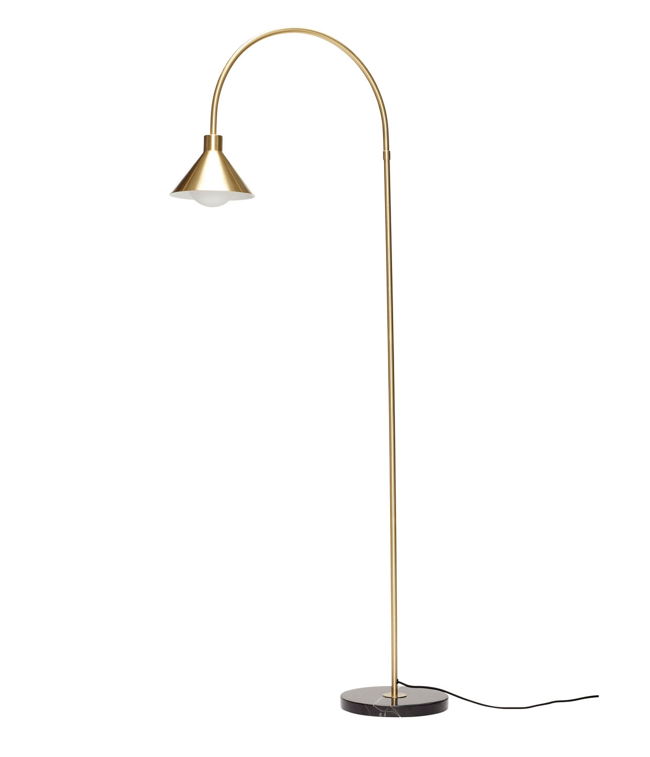 Gulvlampen Pipe med finish i messing har et dekorativt og stilrent design, der kombinerer glas, metal og marmor. Den bløde og enkle form giver sammen med den varme messingfarve gulvlampen et luksuriøst udtryk. Perfekt som et dekorativt element i stue, læsehjørne eller andre steder med behov for elegant og funktionel belysning.