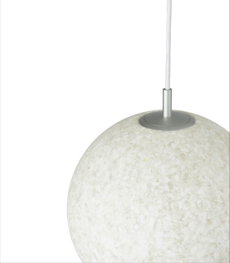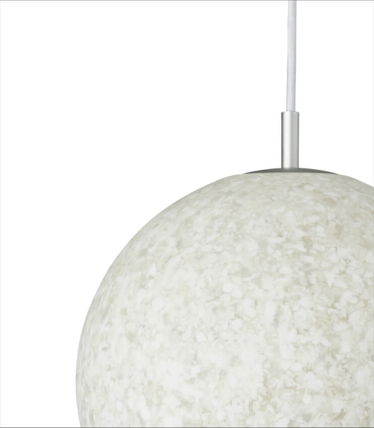 Pix er en kollektion af pendler i arketypisk sfærisk form og en cirkulær sammensætning af 100% genanvendt plastikaffald.