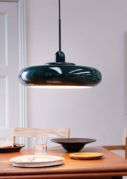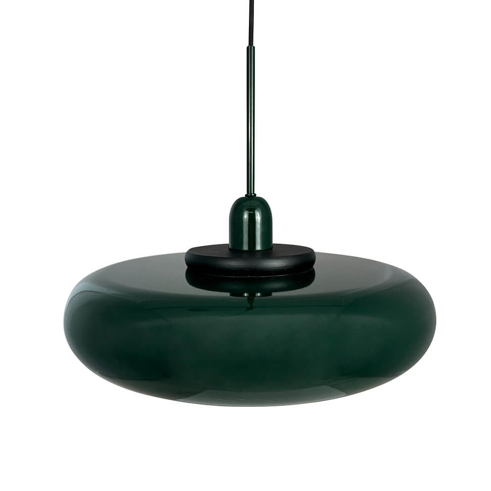 Dyberg Larsen Planet pendel, mørkegrøn med sort træring - designet af Frank Kerdil