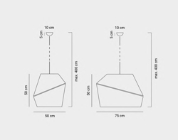 Lampen findes både som pendel og gulvlampe med skærme i to forskellige størrelser og fem forskellige farver - off white, antrasit, deep green/grøn, sand taupe og cinnamon brown/brun.