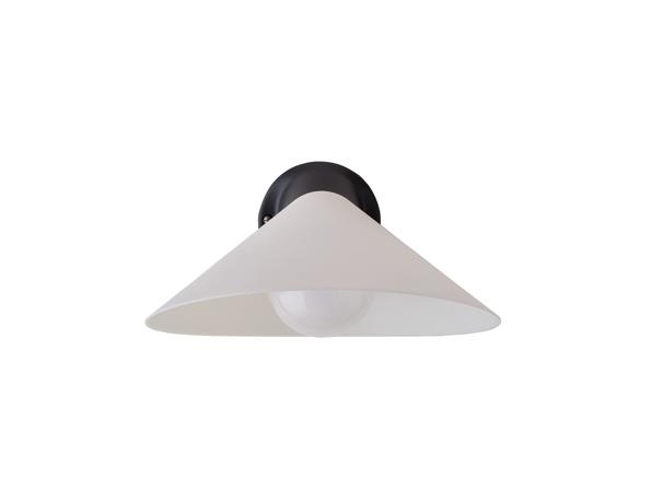 Plume væglampen har en sort base af aluminium. Den findes i forskellige modeller med IP20-klassificering med skærm af polycarbonat eller af porcelæn og i denne Bath-variant med skærm af enten polycarbonat eller porcelæn. Bath-modellen er med IP44-klassificering, så den kan benyttes på badeværelset og i andre vådrum.