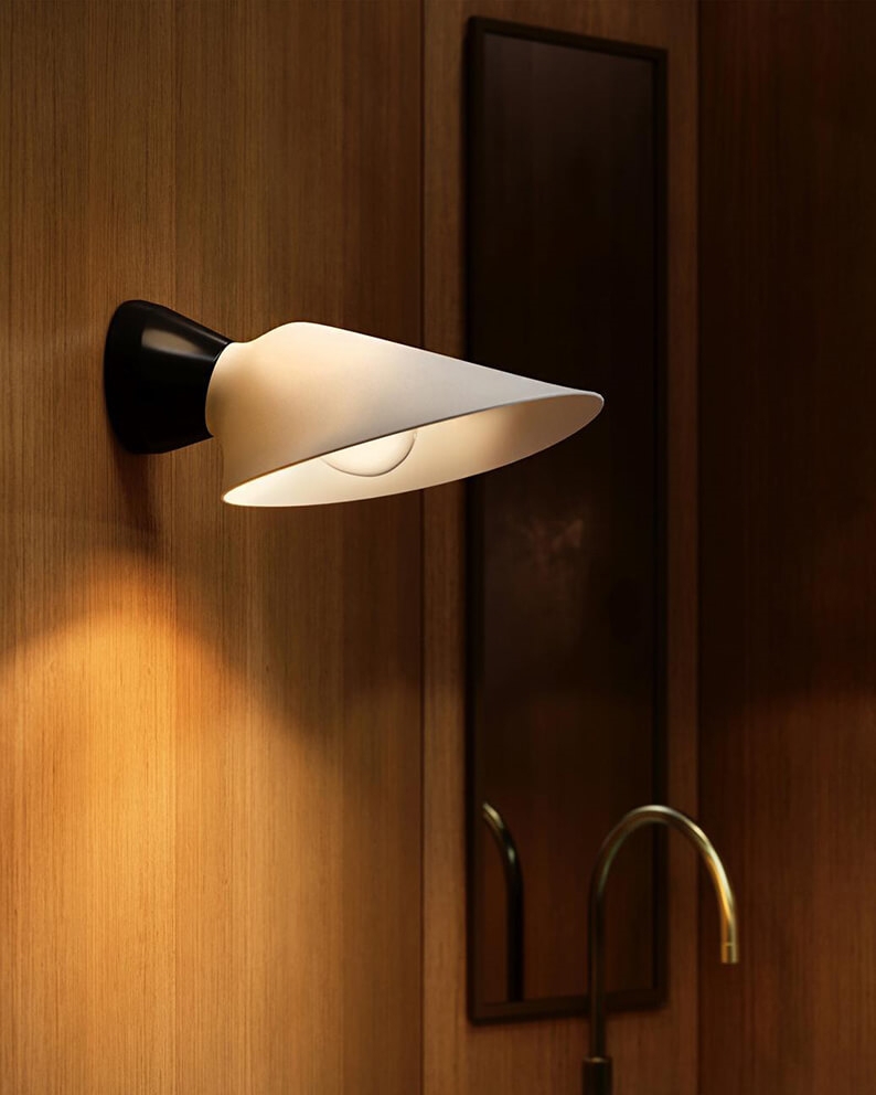 Plume Bath væglampen har et delikat design med bløde linjer. Lampeskærmen får lyset til at vende nedad, mens den samtidig giver en masse lys til rummet.
