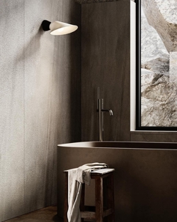 Plume Bath væglampen har et delikat design med bløde linjer. Lampeskærmen får lyset til at vende nedad, mens den samtidig giver en masse lys til rummet.