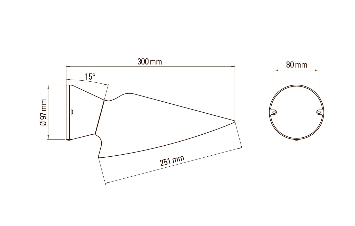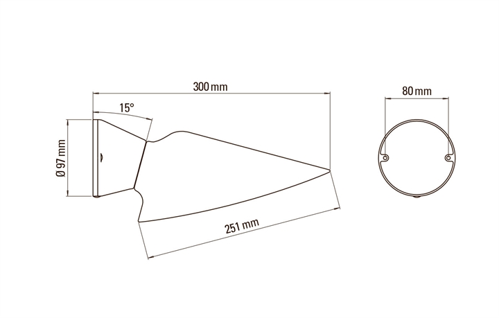 Plume væglampen har en sort base af aluminium. Den findes i forskellige modeller med IP20-klassificering med skærm af polycarbonat eller af porcelæn og i denne Bath-variant med skærm af enten polycarbonat eller porcelæn. Bath-modellen er med IP44-klassificering, så den kan benyttes på badeværelset og i andre vådrum.