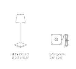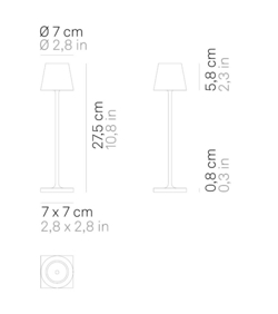 Batterilampen Poldina micro er den mindste udgave af den populære transportable bordlampe Poldina. Lampen findes også i en mini-udgave og har et stilfuldt design med et klassisk lampehoved på en slank lampestilk med en diskret base.