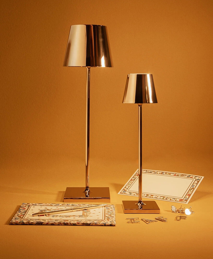 Zafferano Poldina Pro micro batterilampe/bordlampe, blank guld