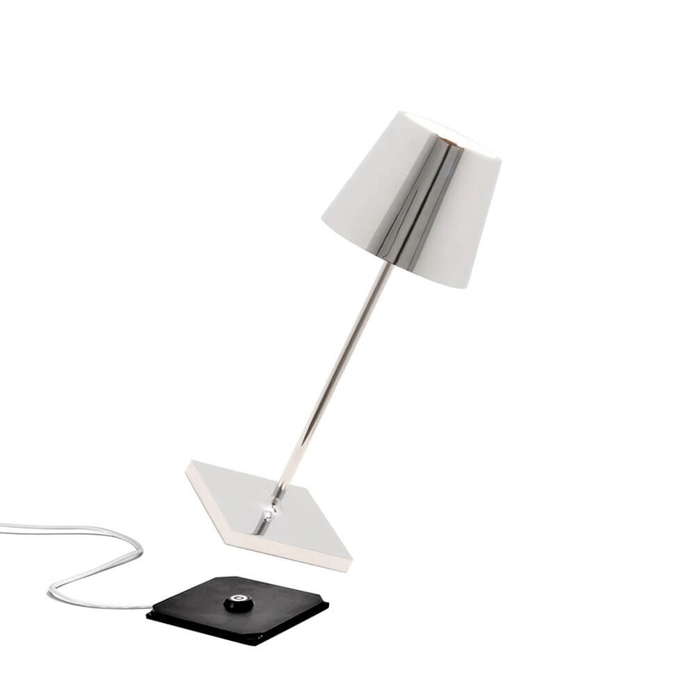 Zafferano Poldina Pro mini batterilampe/bordlampe, blank krom