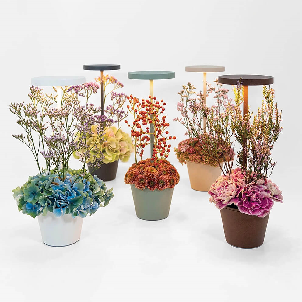 Den transportable bordlampe Poldina Reverso har et utraditionelt design, hvor den klassiske bordlampe er vendt på hovedet. Det er udnyttet til at udstyre batterilampen med en multifunktionel og fødevaresikker beholder i termoplast (PET), der kan benyttes til alt fra blomstervase til slikskål.