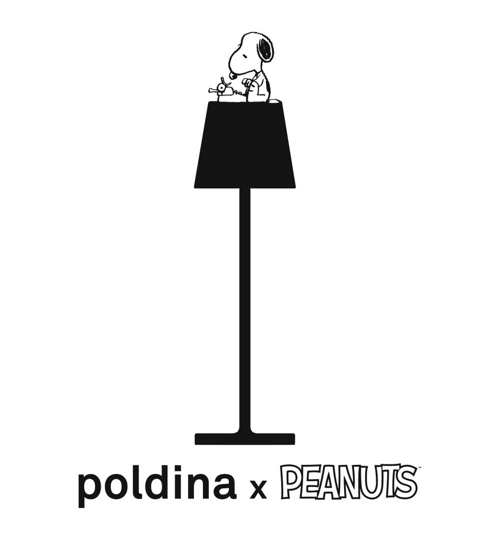 Poldina x Peanuts er specialudgaver af den populære transportable bordlampe Poldina med de ikoniske karakterer fra tegneserien Peanuts eller Radiserne, som vi kalder den på dansk. Denne variant med base i hvid er med Snoopy/Nuser og vil sprede både lys og glæde for store såvel som små.