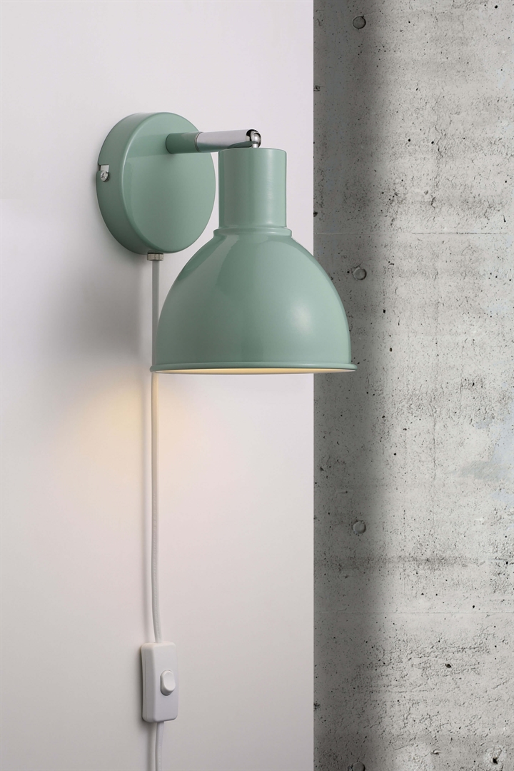 Væglampen Pop findes i flere farver og som pendel. Lampehovedet er justerbart, og lyset kan derfor rettes, som det ønskes. Lampen vil passe godt ind ved siden af sengen, sofa eller ved et køkkenbord.