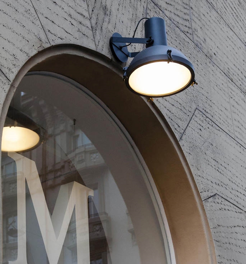 Projecteur 365 Outdoor lampen er en stor version af den lille Projecteur 165 væg/loftslampe, som også findes til indendørs brug.