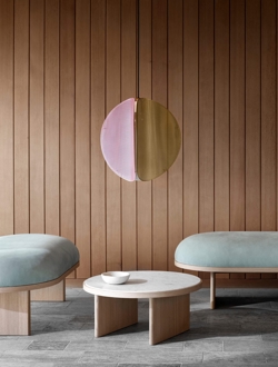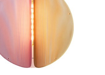 Pendlen Proxima er inspireret af den fjerne glød fra vores nærmeste nabostjerne Proxima Centauri. Lampen har et trefarvet design i stål med finish i messing, askegrå og jaipur lysrød med hundredvis af små perforeringer, så lyset spredes blødt i alle retninger.