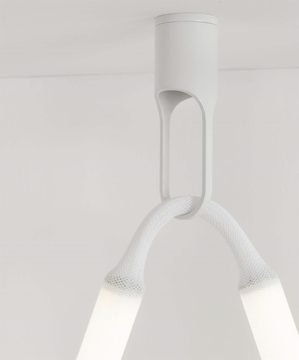 Reb lampen findes med fem eller otte LED-moduler og er en utraditionel pendel, der hænger fra loftet som et oplyst reb. Den fleksible lampe kan hænge alene eller flere sammen arrangeret som et skulpturelt element i rummet eller placeret side om side som rumdeler eller lysgardin.