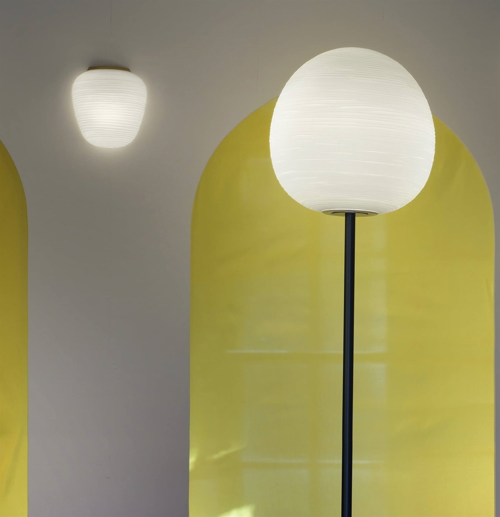 Foscarini har med Rituals serien oversat letheden fra Washi papir, der anvendes i orientalske lanterner til en kollektion af lamper. Det flotte håndværk af en væglampe er fremstillet i en halvværet skærm i blæst graveret glas med fine riller og lakeret metal. Rituals væglampe skaber et varmt og levende lys til rummet. Rituals 3 semi væglampe er tilgængelig i 3 flotte farver; guld, grafit og hvid og findes i 3 forskellige størrelser; Rituals 1 semi, Rituals 3 semi og Rituals XL semi.