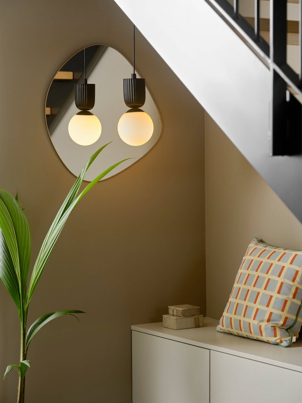Pendlen Sadie har et flot udtryk med et mix af opalglas og riflet keramik. Lampen leverer et behageligt og blændfrit lys fra den mundblæste kuppel i opalglas, der får karakter og sit levende udseende fra den manuelle fremstilling og kan variere i udtryk og tykkelse.