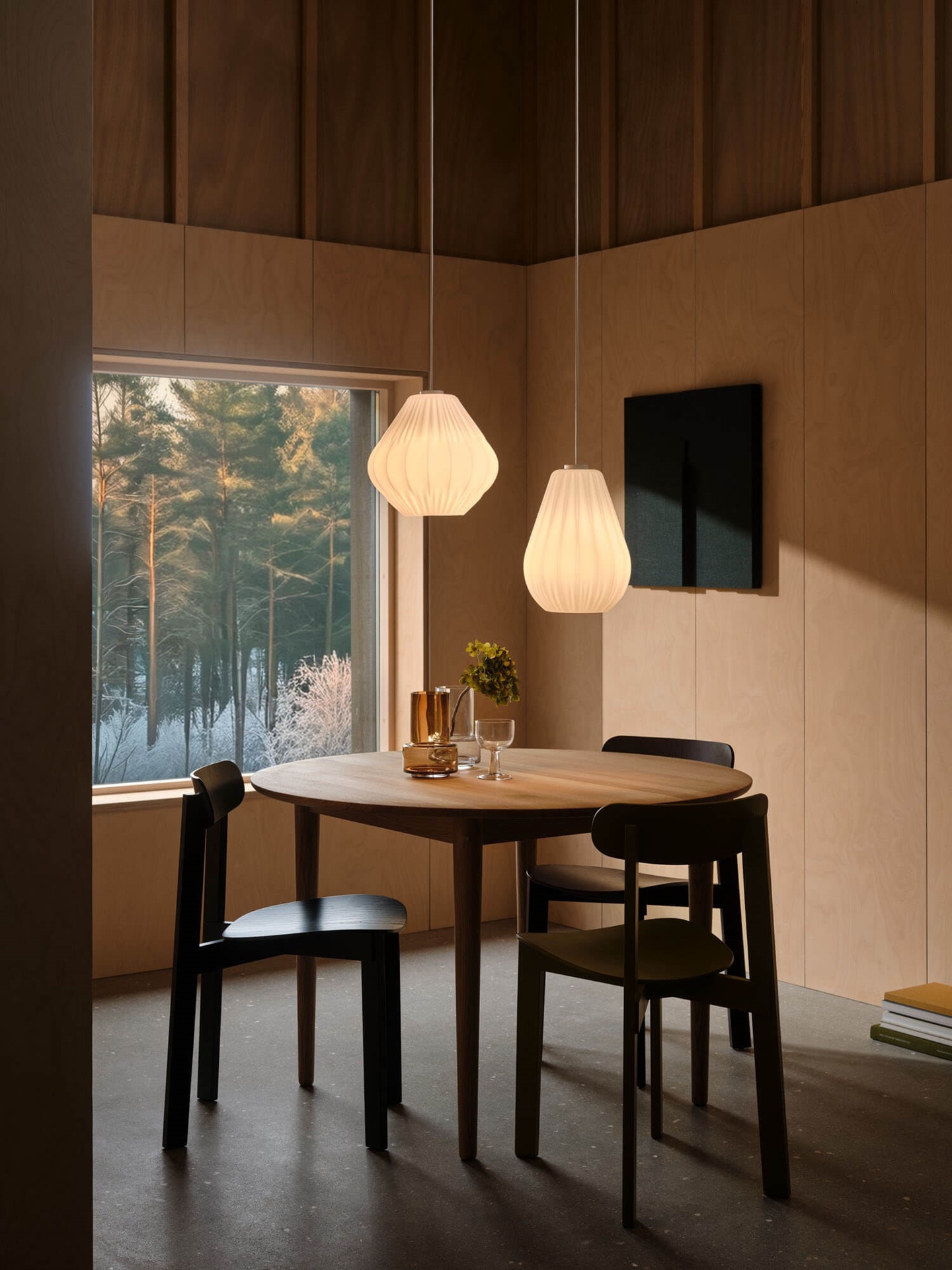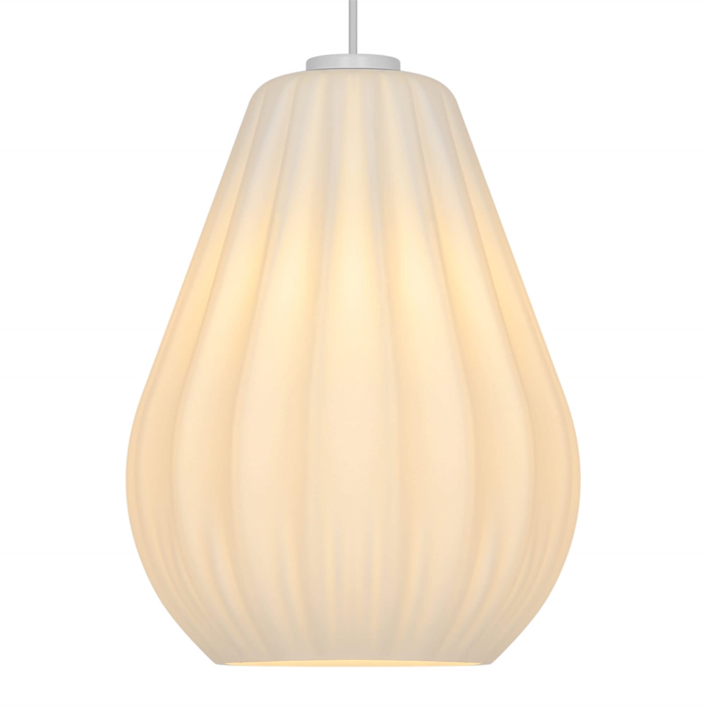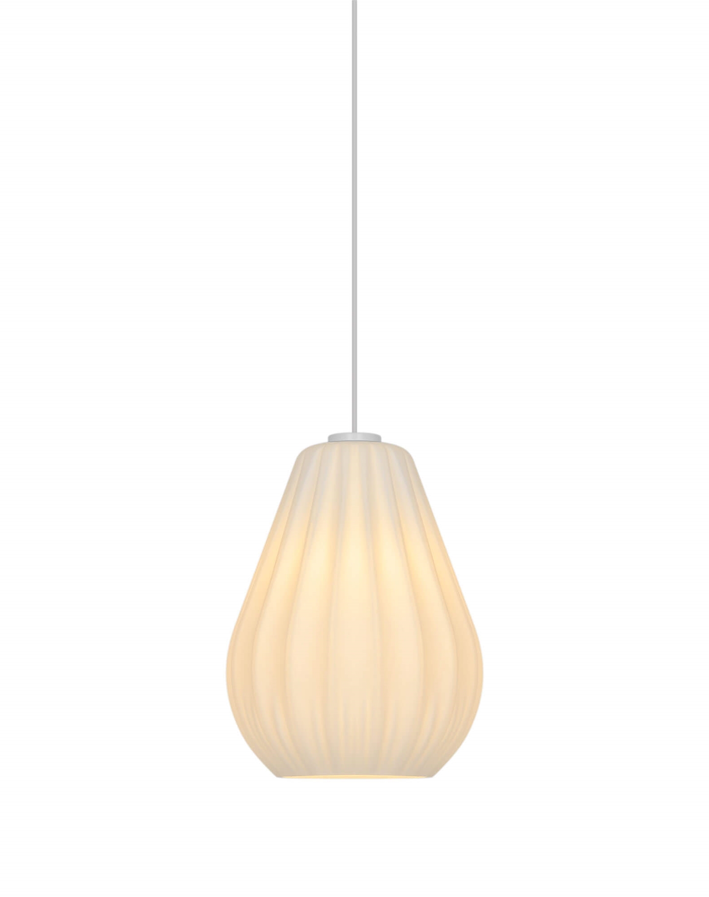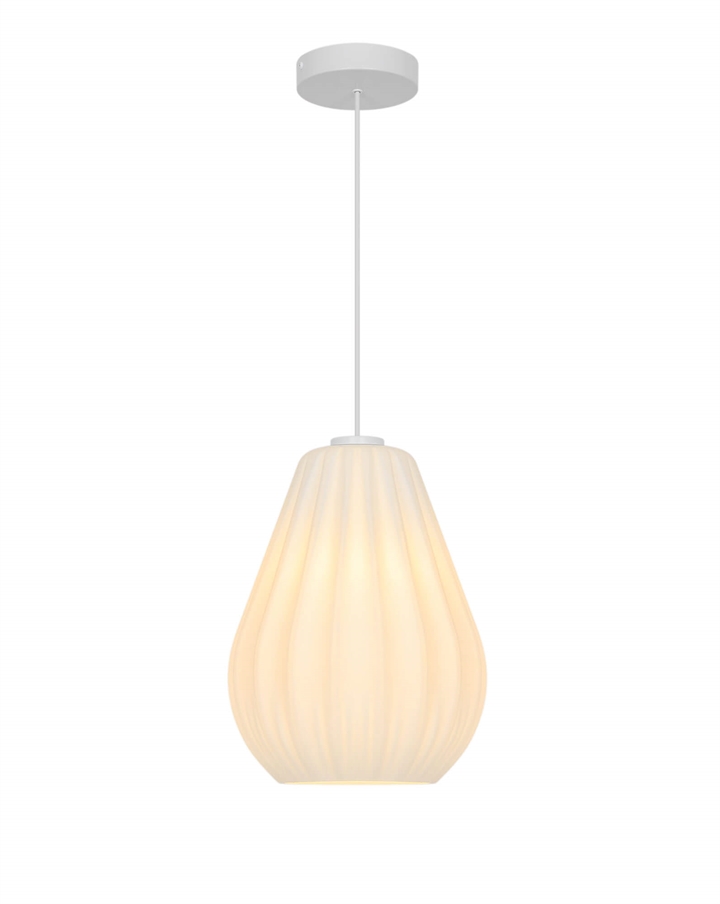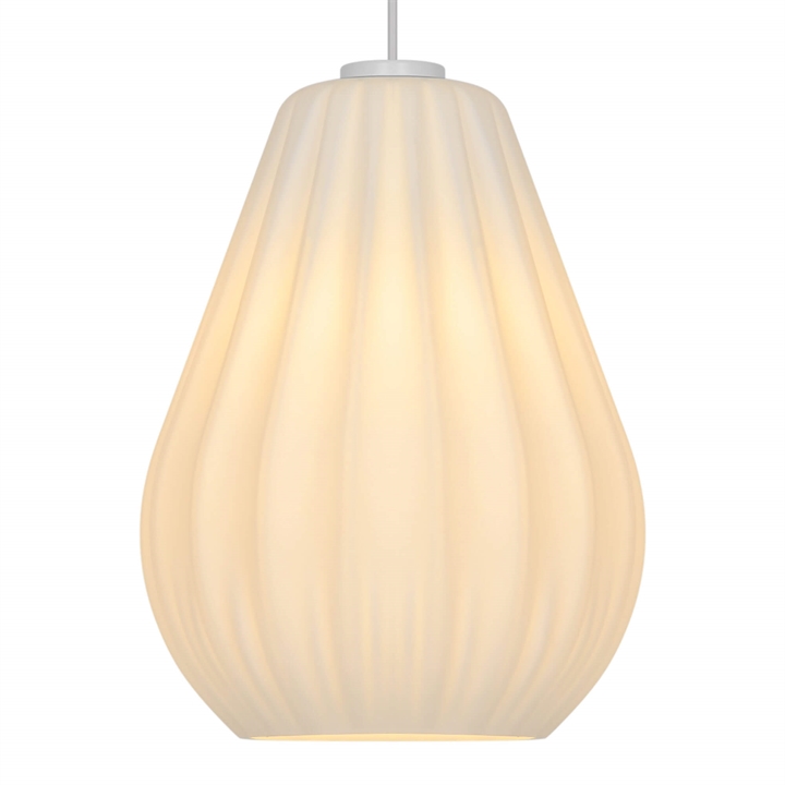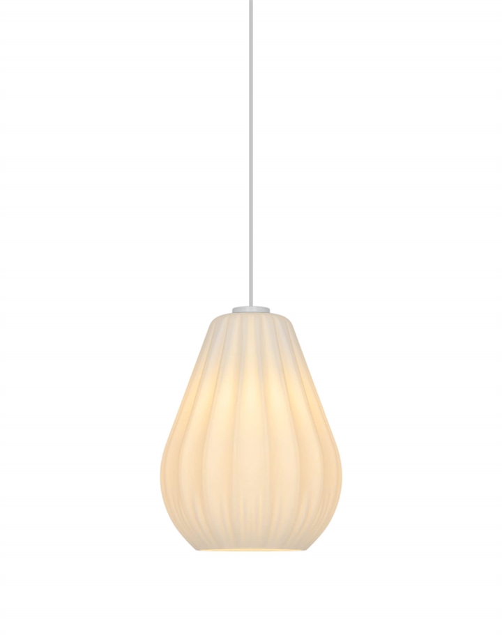 Sallinos stilfulde udtryk trækker på klassisk lampedesign med plisserede skærme og er fremstillet i mat hvidt opalglas.