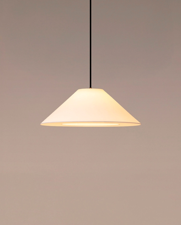 Designet som en hyldest til pap og dets varme, diffuse lys, skaber denne lampeskærm en hyggelig stemning – perfekt til lange samtaler omkring bordet. Vælg mellem to varianter af syet pap, beige eller hvid, der begge smelter harmonisk sammen med indretningen.