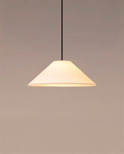Santa & Cole Sísísí Cónicas Planas pendel, white parchment med kabel/baldakin i sort/satin nikkel - designet af Gabriel Ordeig Colei i 1987.