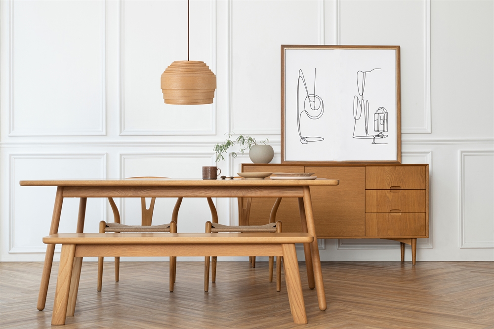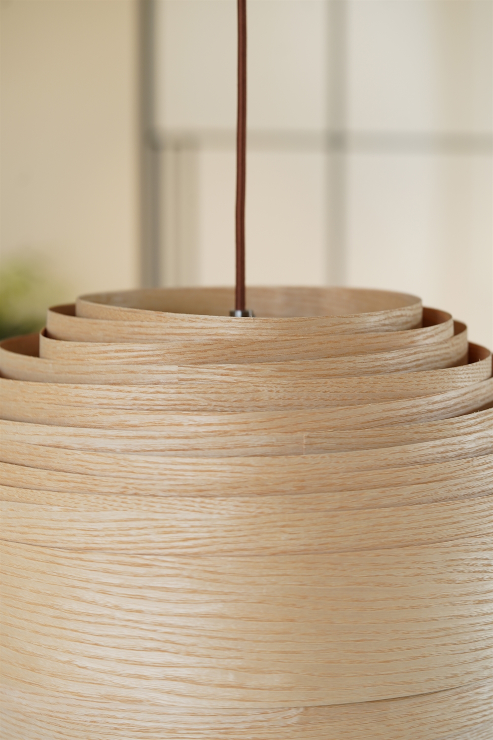 Hver lampe fremstår unik, da asketræets naturlige åretegninger varierer fra produkt til produkt.