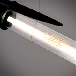 BIC® Lamp genfortolker den legendariske BIC® Cristal i en 12:1-skala i sine tre mest genkendelige versioner – klassisk sort, blå og rød – i en kombineret gulvlampe, pendel og væglampe. Fremstillet i materialer, der nøje efterligner originalen, samtidig med at den sikrer optimal belysning, hylder lampen et af verdens mest udbredte og elskede objekter.