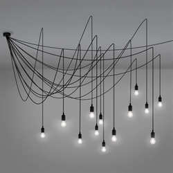 En tentakellignende loftlampe, et lysnet med uendelige kombinationsmuligheder. 14 lange hængende arme til store og fleksible rum.