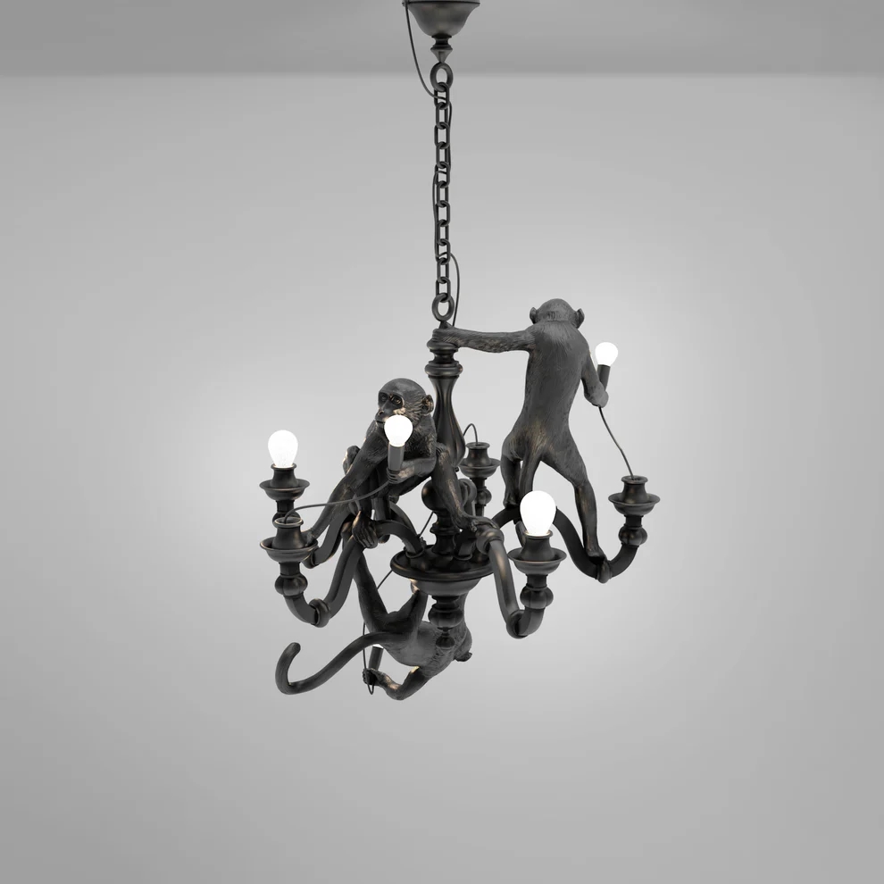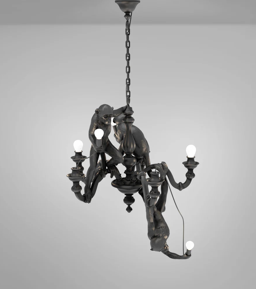 Seletti Monkey lysekrone, sort – designet af Marcantonio i 2019