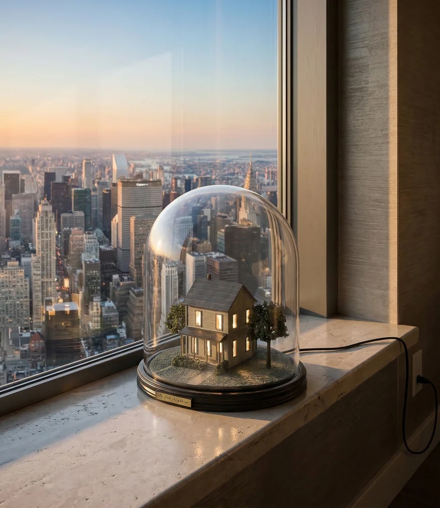 Engang uden tid og sted stod der et lille hus under en glaskuppel. Ved solnedgang vågner scenen til live og bliver næsten surrealistisk. Et imperium af lys lige ved hånden, indhyllet i en aura af mystik.
