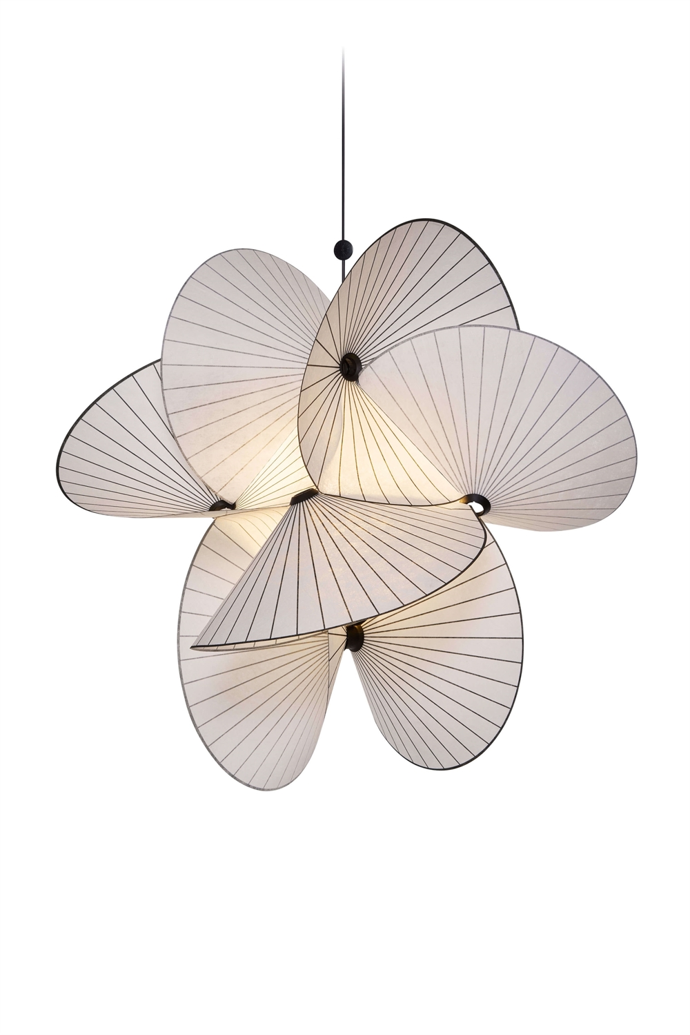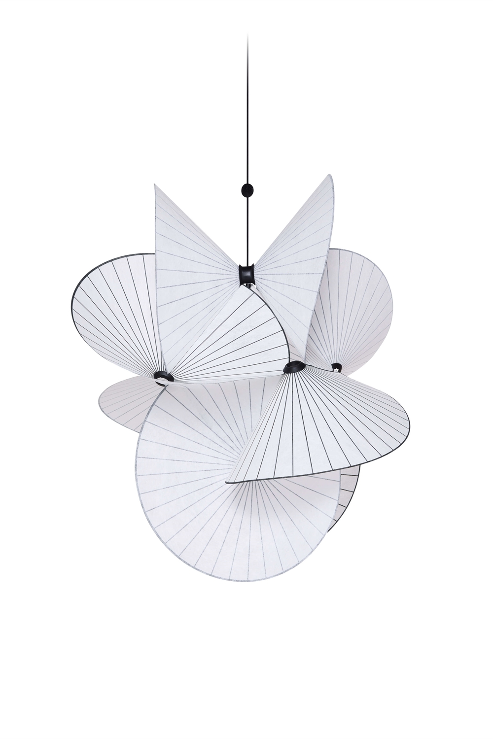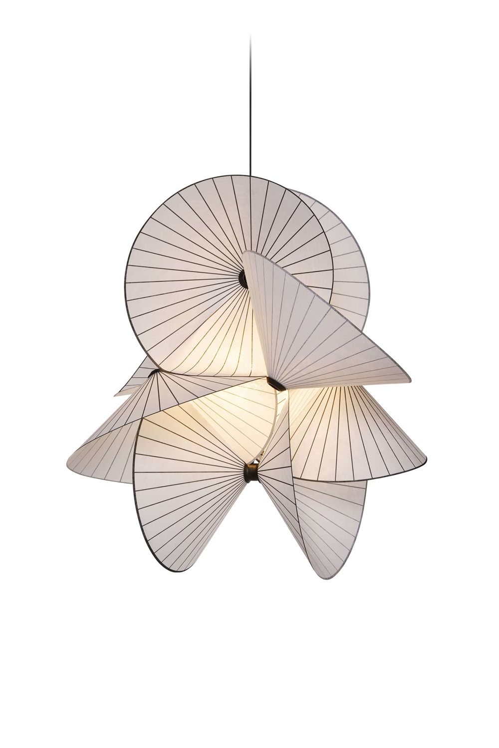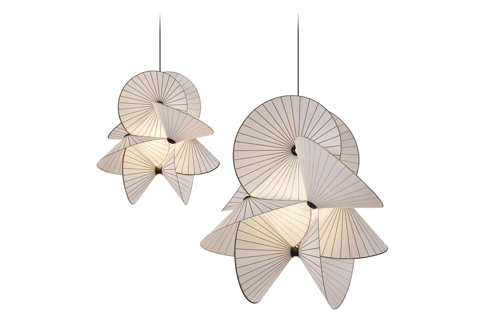 De mørke linjer i skærmene skaber effekten af en endeløs opadgående spiral, og det næsten gennemskinnelige materiales flow og kurver spreder lyset jævnt. Designets stærke karakter og illusion af evig bevægelse gør Serpentine Light til den perfekte lampe til at hænge over dit spisebord, i din entre eller over dit skrivebord på dit kontor.