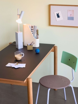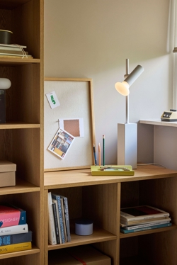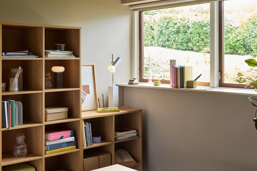 Set bordlampen er en iøjnefaldende og praktisk tilføjelse til både reolen, natbordet og skrivebordet. Lampen er en kombination af behageligt lys, solid konstruktion og minimalistisk form.