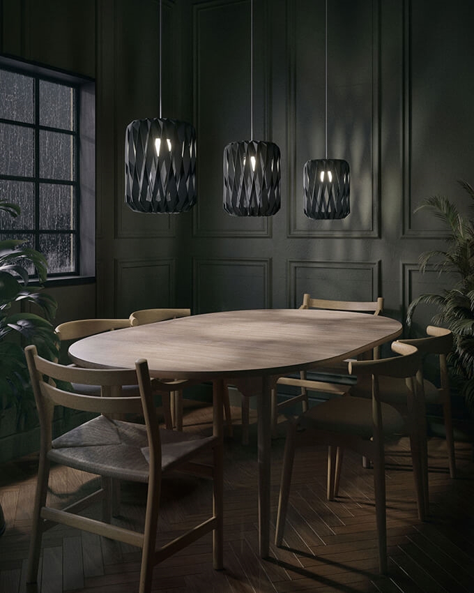 Pendlen er den smalleste i Signature-serien og passer derfor ind i mange afkroge af indretningen både alene eller i kombination med andre Signature-pendler. Pendlen består af naturligt og bæredygtigt træ, der er håndlavet i Finland. Træet skaber en varme, når lyset skinner igennem, og er samlet uden skruer eller lim. Derudover har pendlen et stilfuldt og geometrisk design, der skaber blikfang til ethvert rum. De er både flotte alene men kan også sagtens kombineres, så de hænger i klynger sammen.