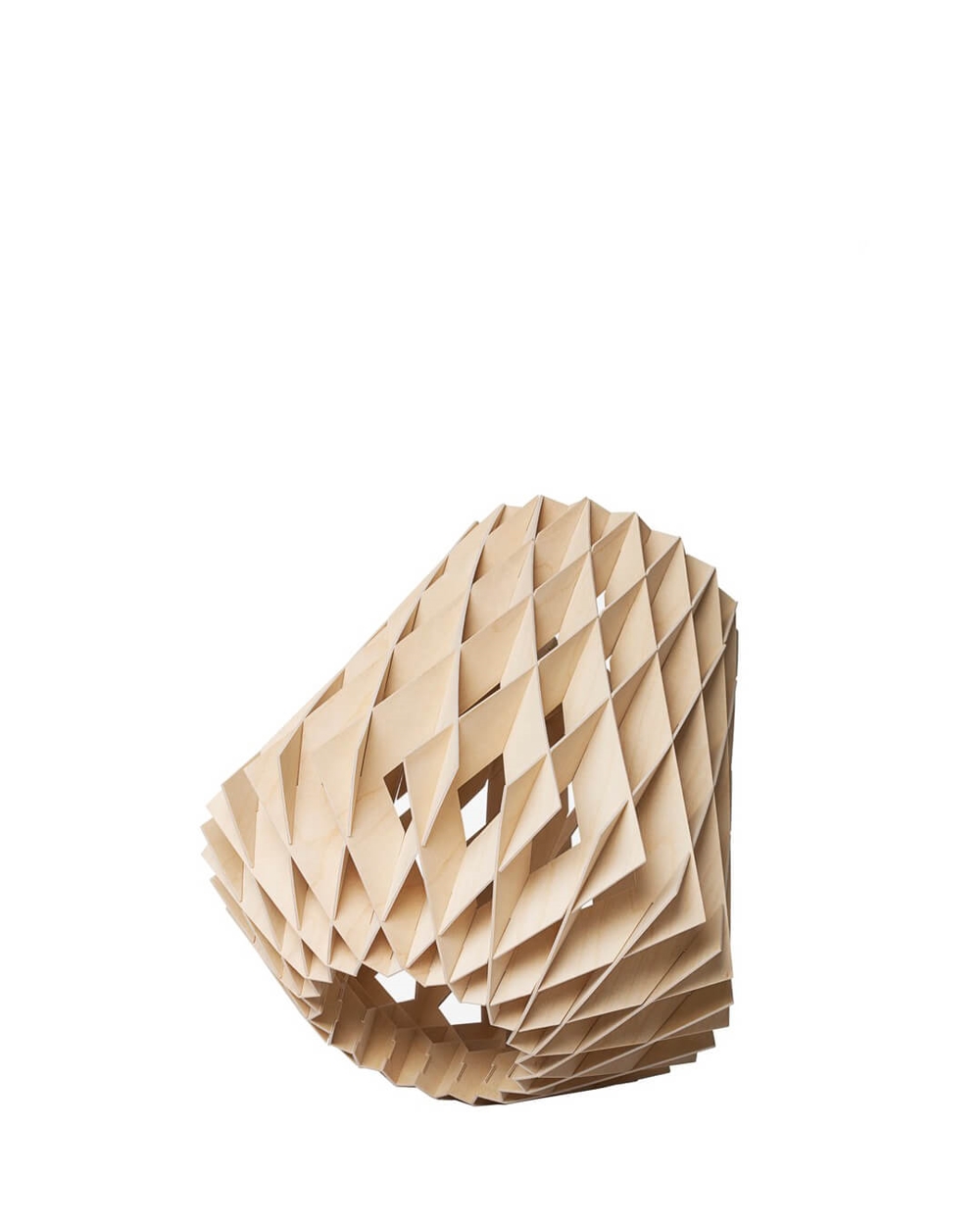 Denne unikke bordlampe kan både stå oprejst eller vippes på bordet, og passer ind mange steder i indretningen. Lampen består af en skærm af bæredygtig certificerede birkekrydsfiner, som er håndlavede. Birkelamellerne skaber en varme, når lyset skinner igennem, og er samlet uden skruer eller lim. Derudover har lampen et stilfuldt og geometrisk design, der skaber blikfang til ethvert rum