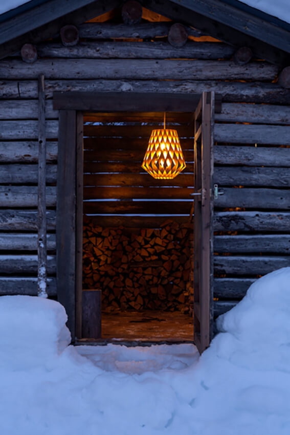 Pendlen har med sin store facon en fylde i rummet og passer både ind i private eller offentlige miljøer. Pendlen består af bæredygtig certificerede birkekrydsfiner, der er håndlavede. Birkelamellerne skaber en varme, når lyset skinner igennem, og er samlet uden skruer eller lim. Derudover har pendlen et stilfuldt og geometrisk design, der skaber blikfang til ethvert rum.