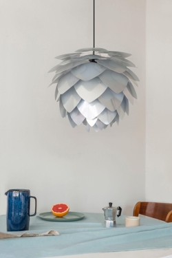 Silvia medium skal kombineres med et ophæng, som købes særskilt. Vælg eksempelvis mellem E27-ophængene Cannonball, Cannonball Cluster 2 og 3, Cord Set, Cord Set Pro eller Rosette fra Umage. Vægophængene Willow, gulv- eller bordstanderne Tripod eller Santé vægbase samt Santé gulv- eller bordstanderne fra Umage passer også godt til Silvia.